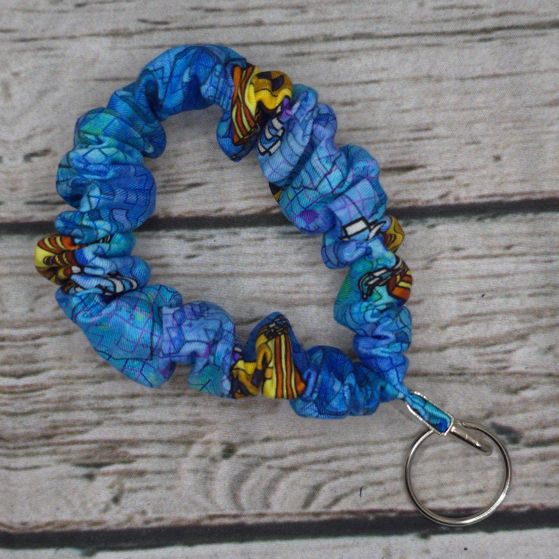 Designed to look like a scrunchie but function like a keychain wristlet, this cute and comfy accessory keeps your keys close while adding a pop of colour to your outfit.