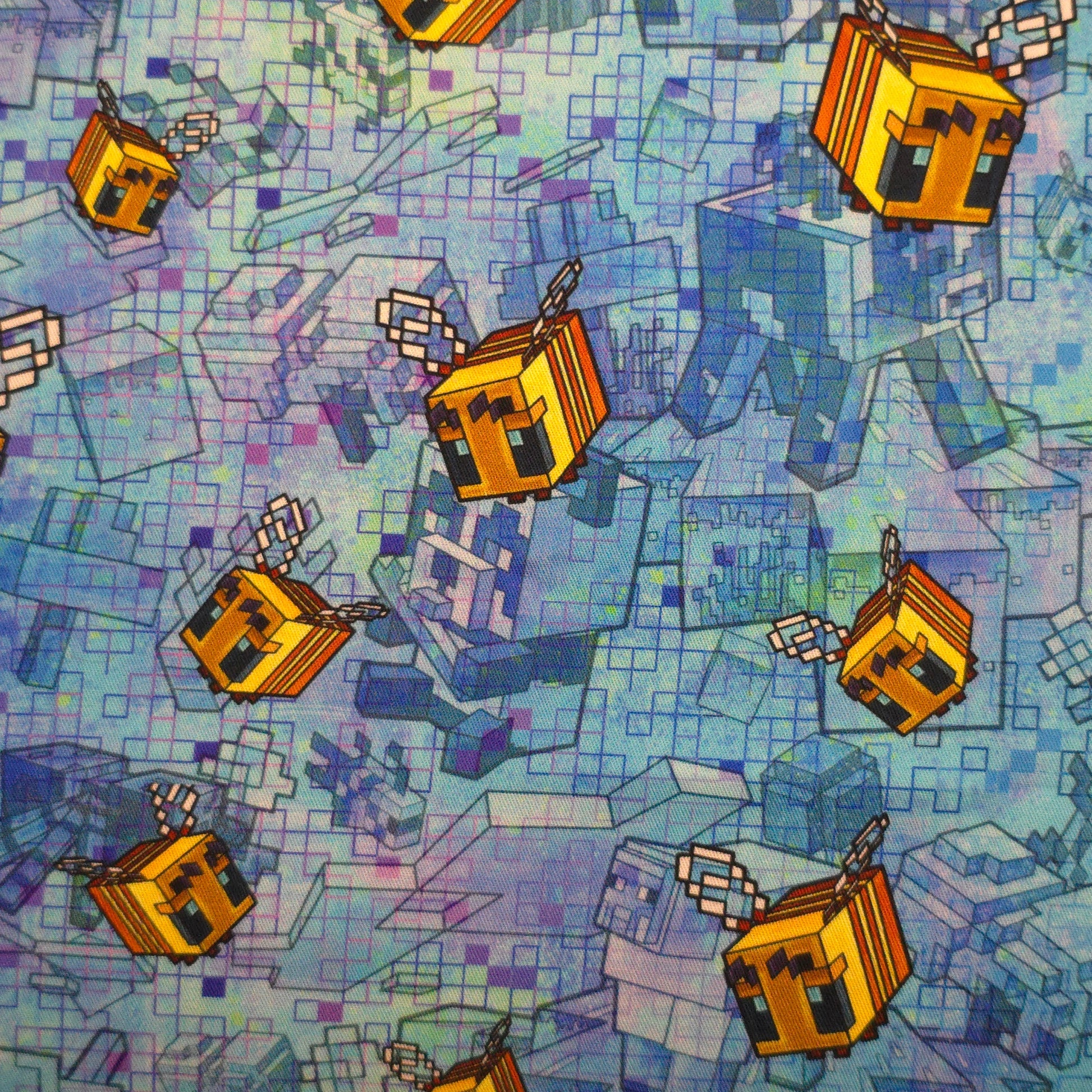Inspired by everyone's favourite blocky world, our BeeCraft print features pixelated buzzing bees flying across a digital landscape. It's a fun nod to the Minecraft universe—perfect for fans who love farming honey, building hives, or just have a soft spot for those adorable square bees