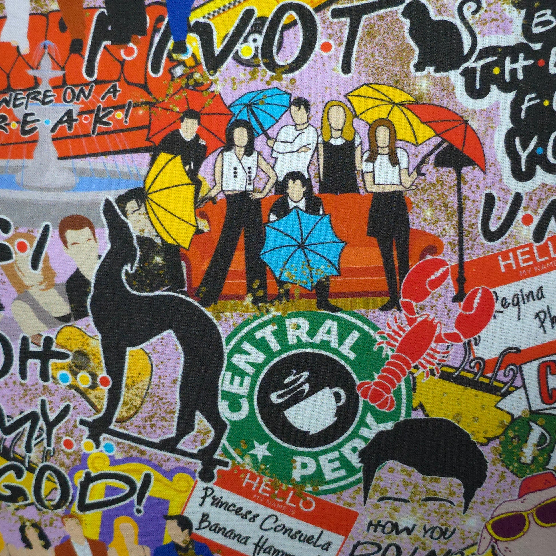 Keep your keys, ID, or work pass close at hand with this handmade fabric lanyard, featuring our Friends print.