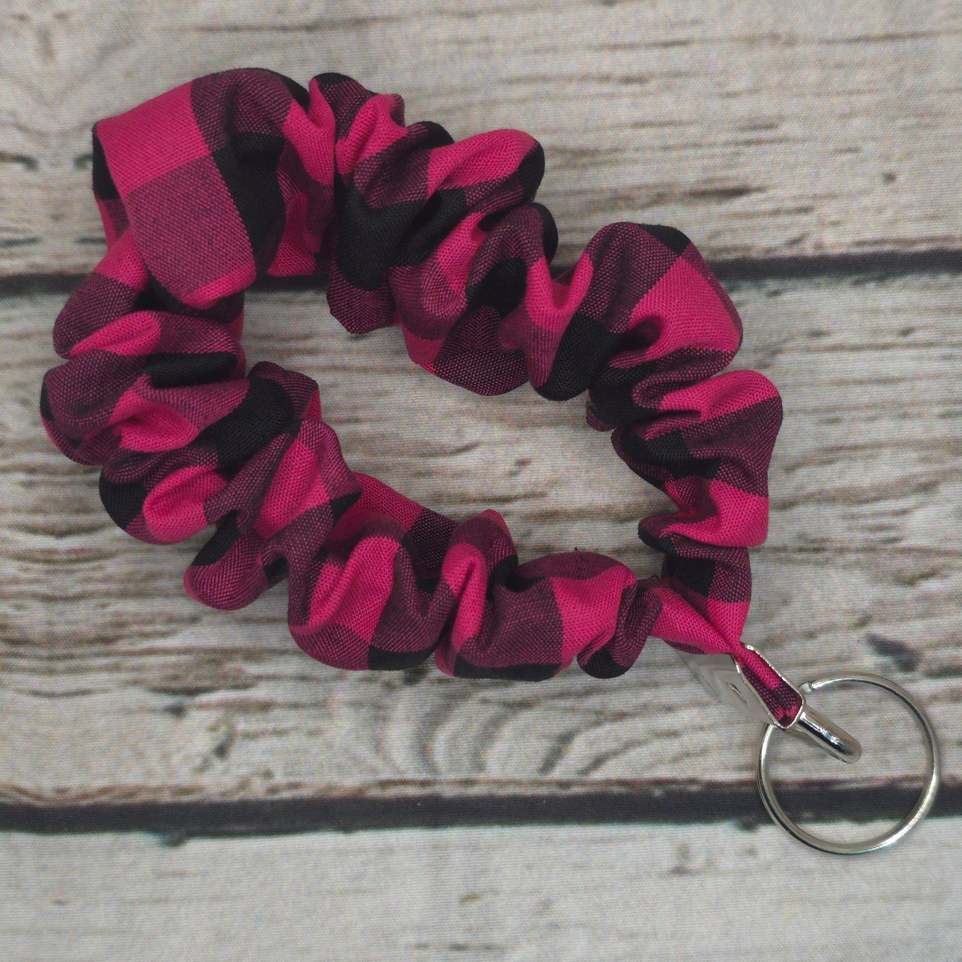 Hot Pink and Black Gingham Scrunchie Wristlet | Polyester Cotton