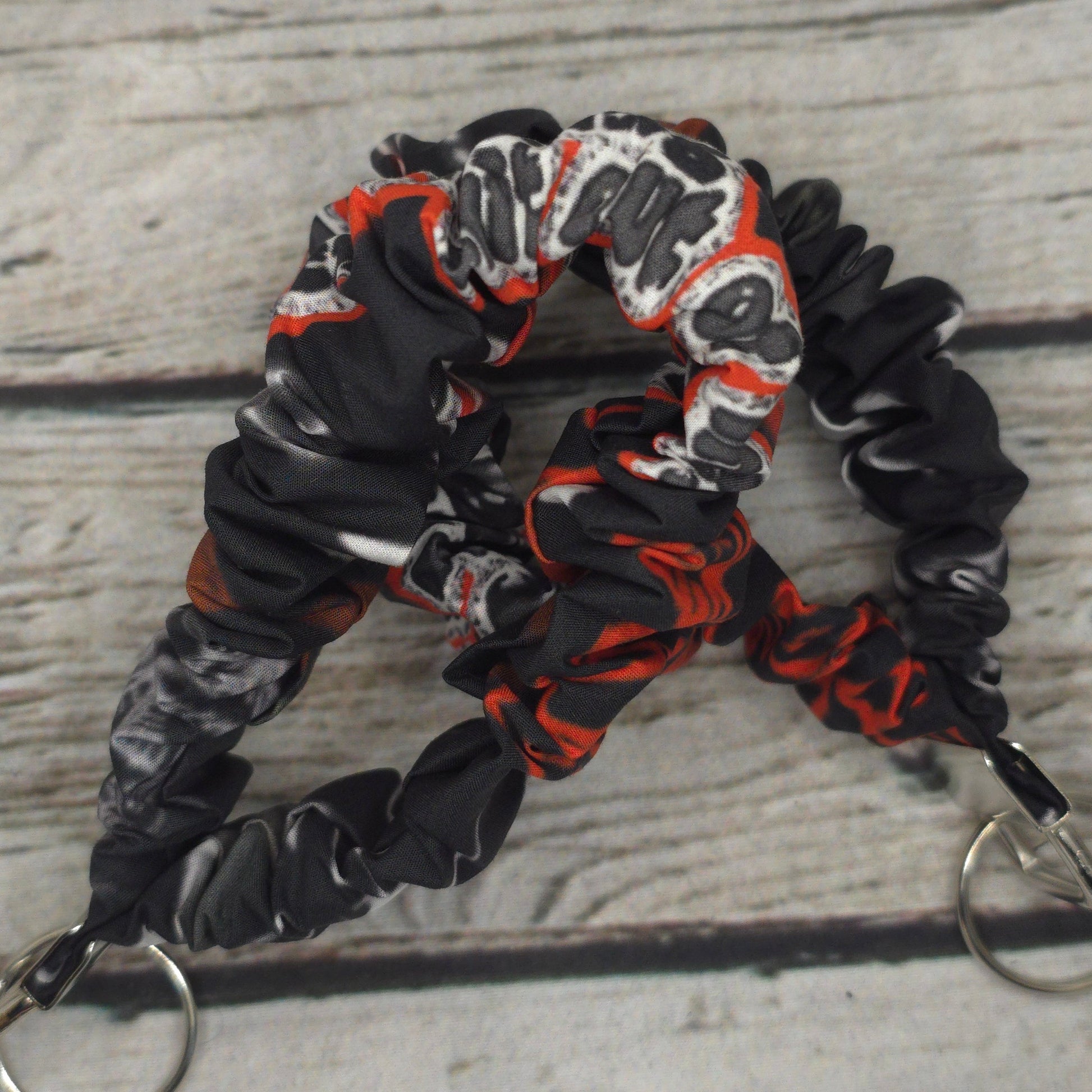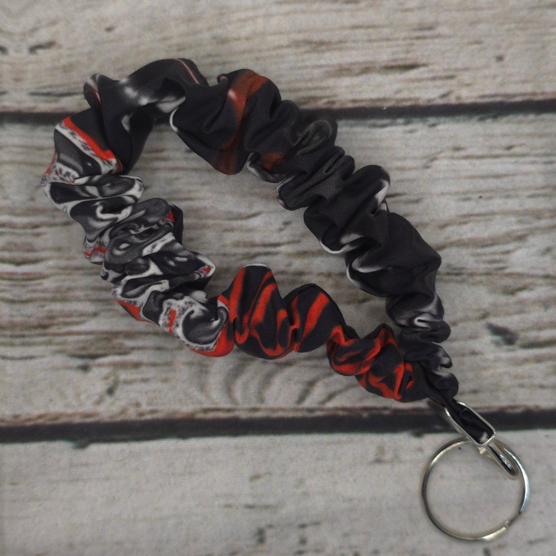 Designed to look like a scrunchie but function like a keychain wristlet, this cute and comfy accessory keeps your keys close while adding a pop of colour to your outfit.