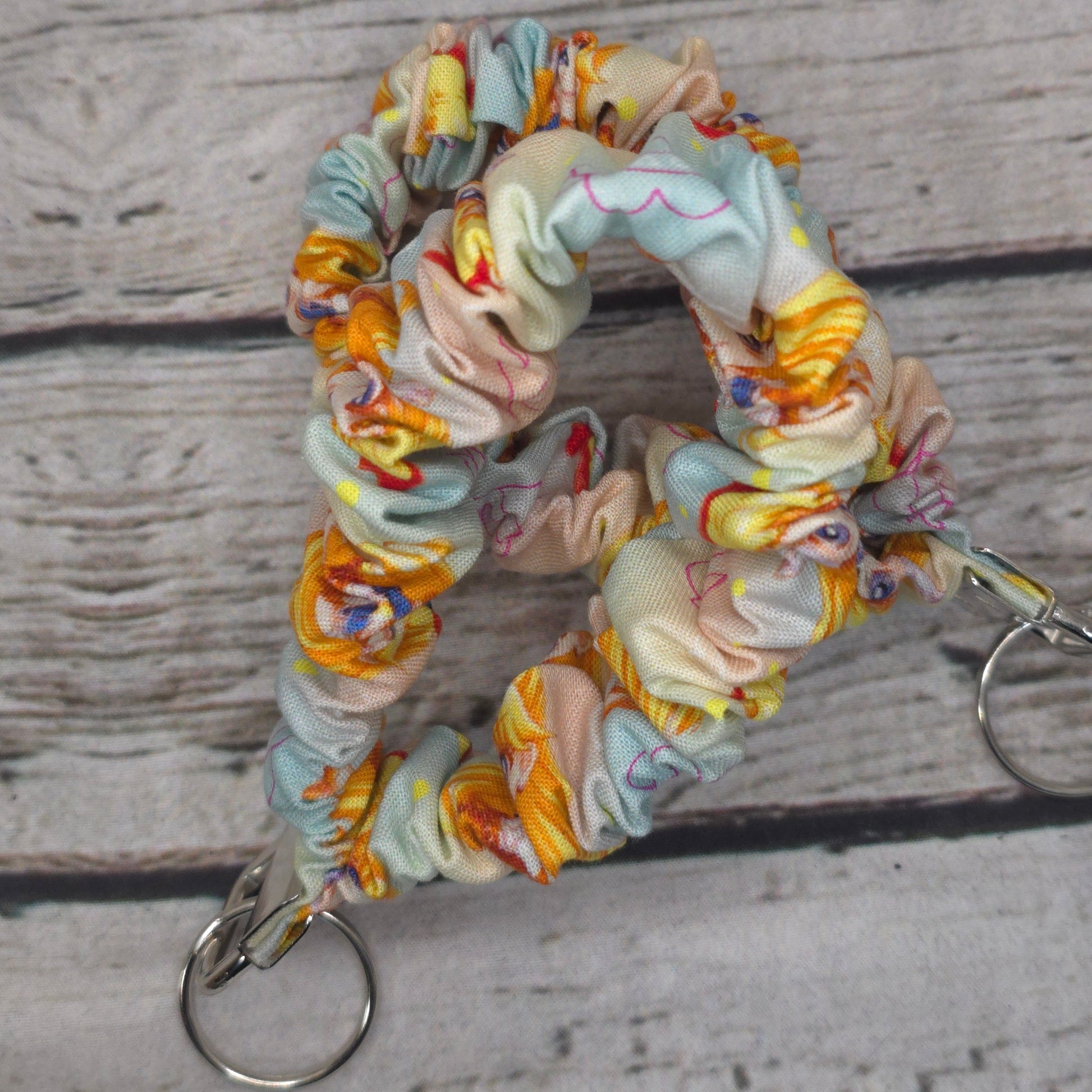 Designed to look like a scrunchie but function like a keychain wristlet, this cute and comfy accessory keeps your keys close while adding a pop of colour to your outfit.