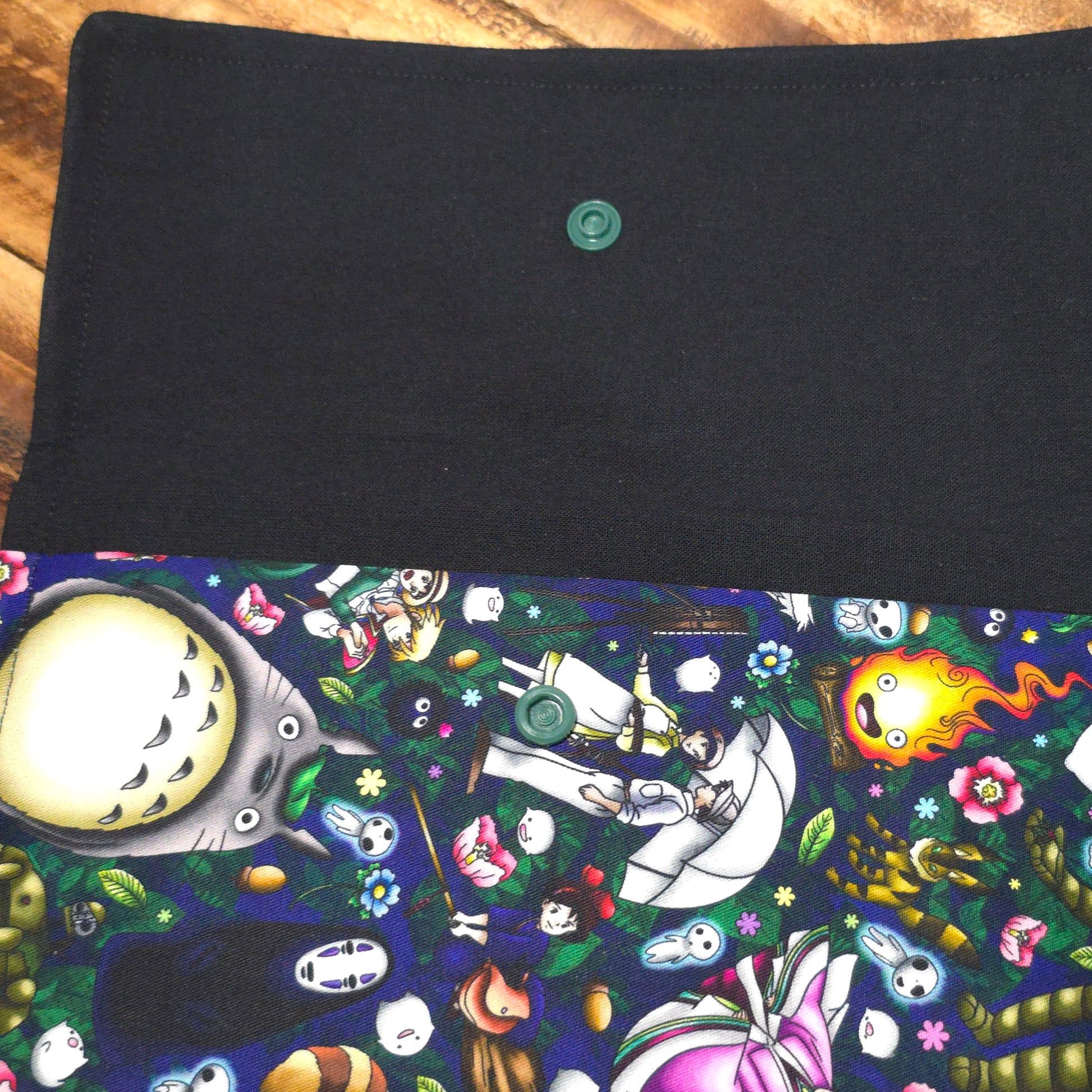 Stylish, practical, and easy to grab on the go. This handmade wallet/clutch is made using our Studio Ghibli print on Cotton, with a sturdy black cotton calico lining.