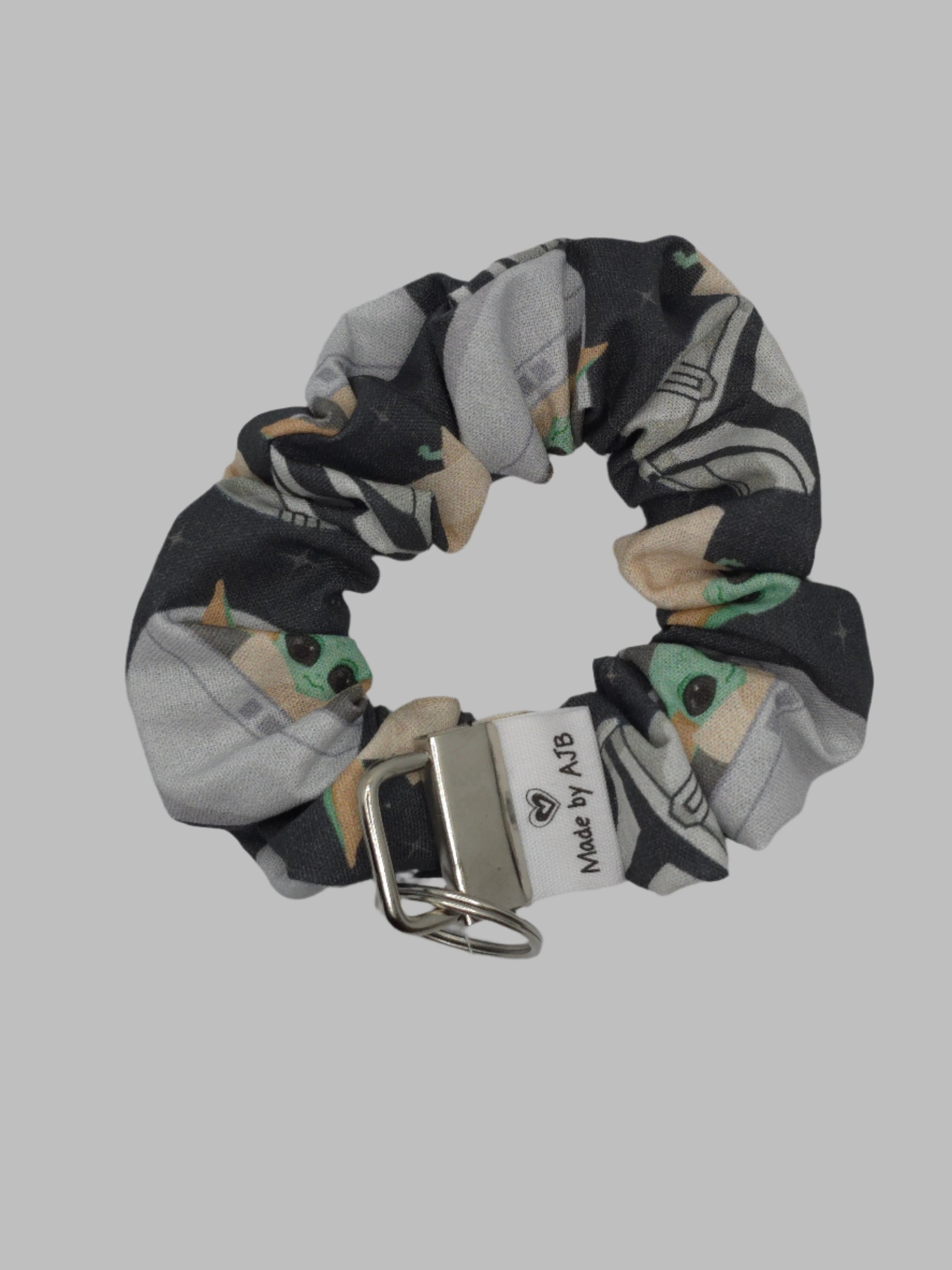 This Wristlet Scrunchie is perfect for attaching to your keys or favourite purse and comfortably slips onto your wrist!
