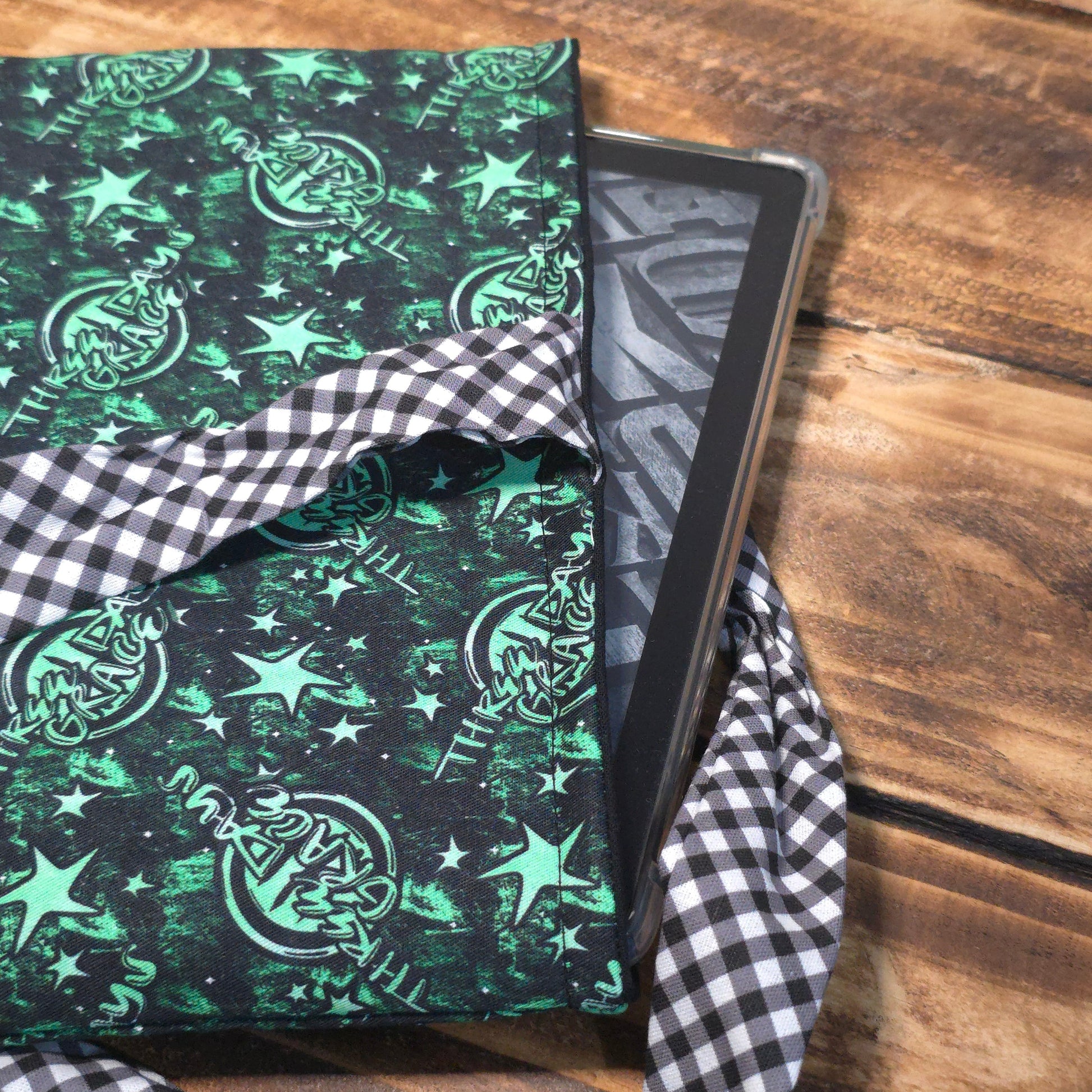 Protect your favourite reads in style with our handmade Three Days Grace fabric book sleeve. Featuring a practical side tie closure, it keeps your books and devices safe from bent pages, scratches, and everyday wear — whether you’re tossing it in your bag, packing it for travel, or keeping it cosy on your bedside table.